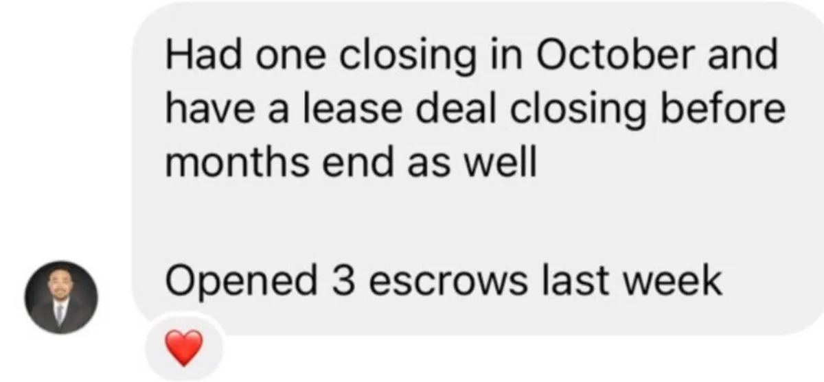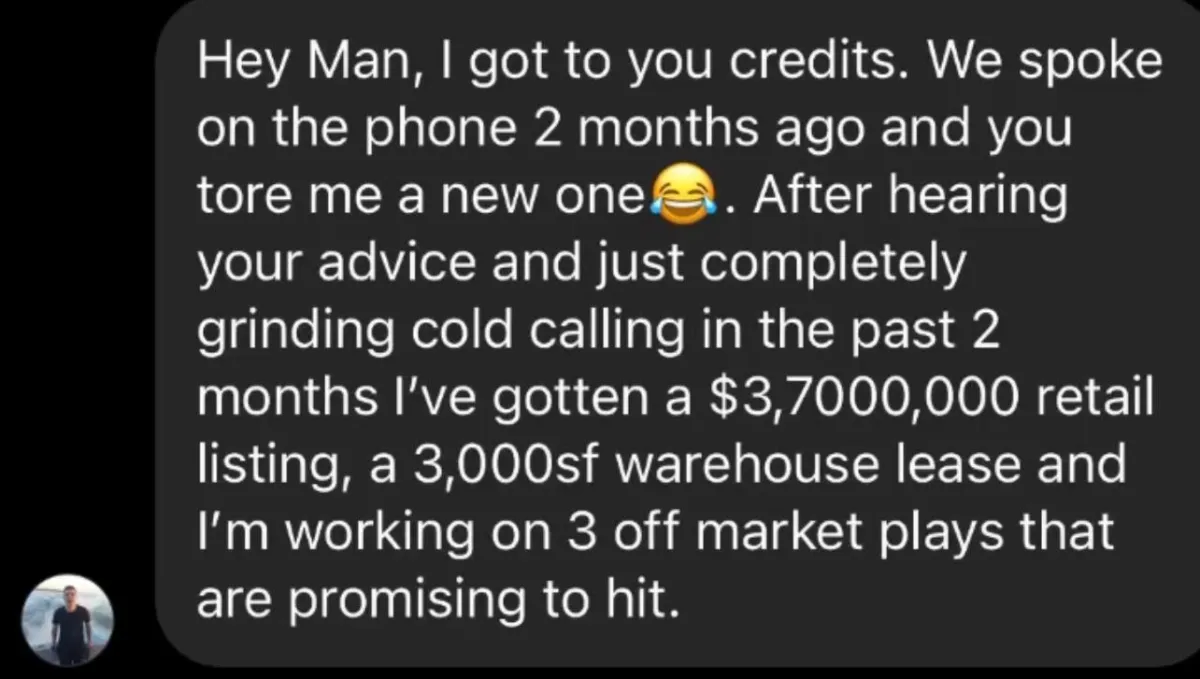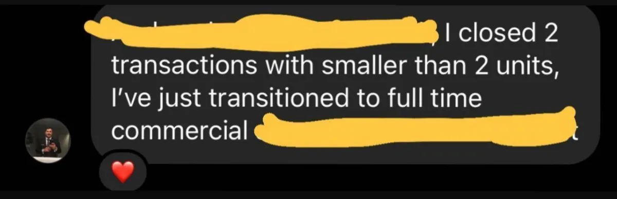 "Henry has been an amazing mentor to me in the real estate world. He knows exactly how todays investors think and it has really helped me grow as a commercial real estate agent. I’m now able to fluently speak with these investors and my productivity has 10x with Henry as my mentor. I closed on my first deal for $3.95m at 6% commission because of Henry. Grateful is an understatement" - Cole M.