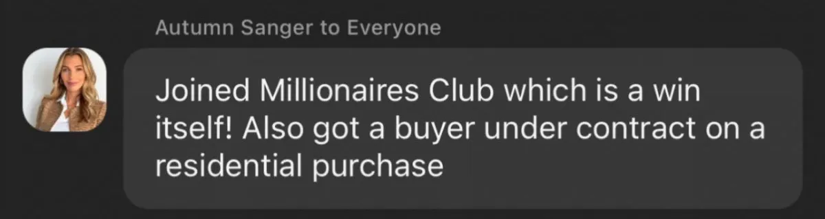 Closed on a $3m+ Deal within 90 days of joining the Millionaire's Club
